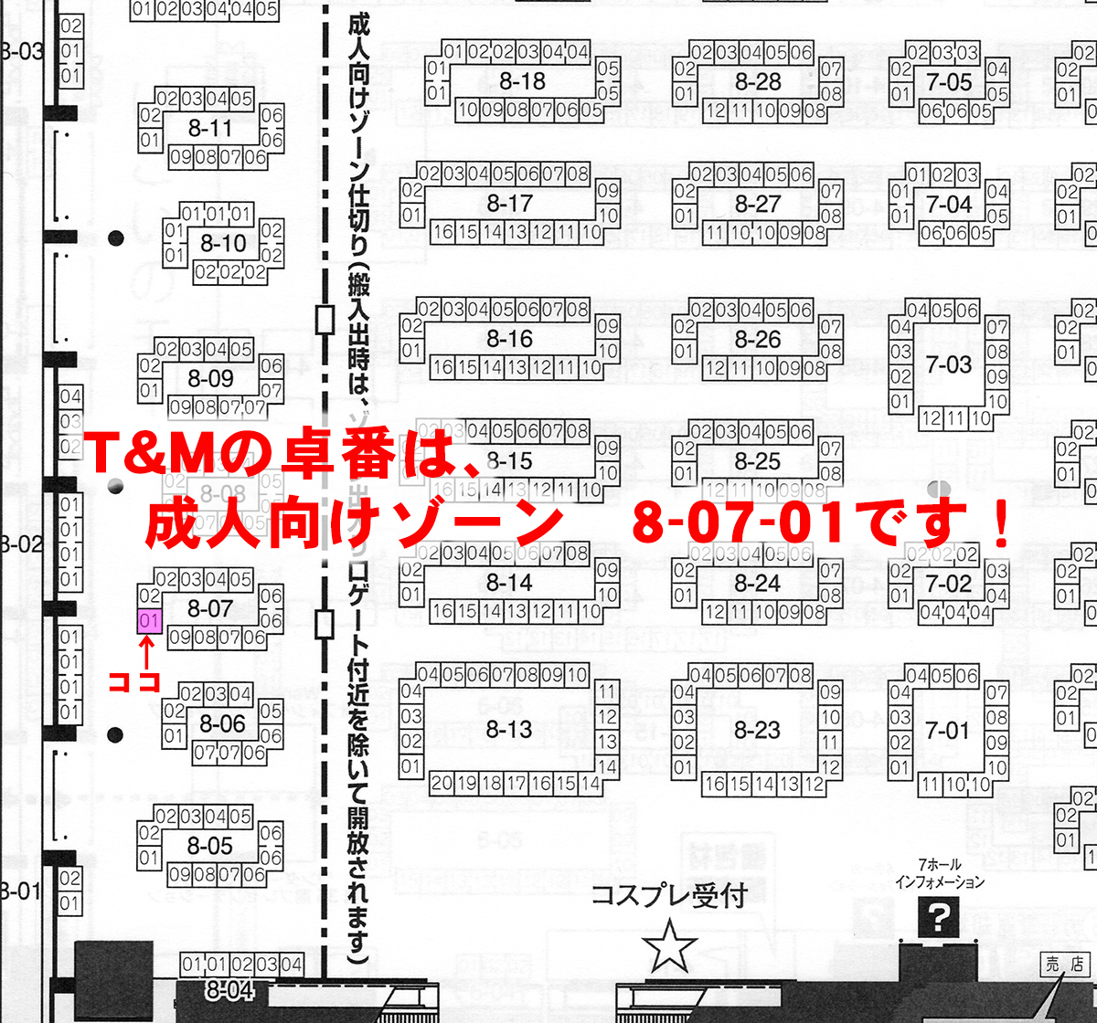 T&M「卓番8ー07ー01(成人向けゾーン)」です。