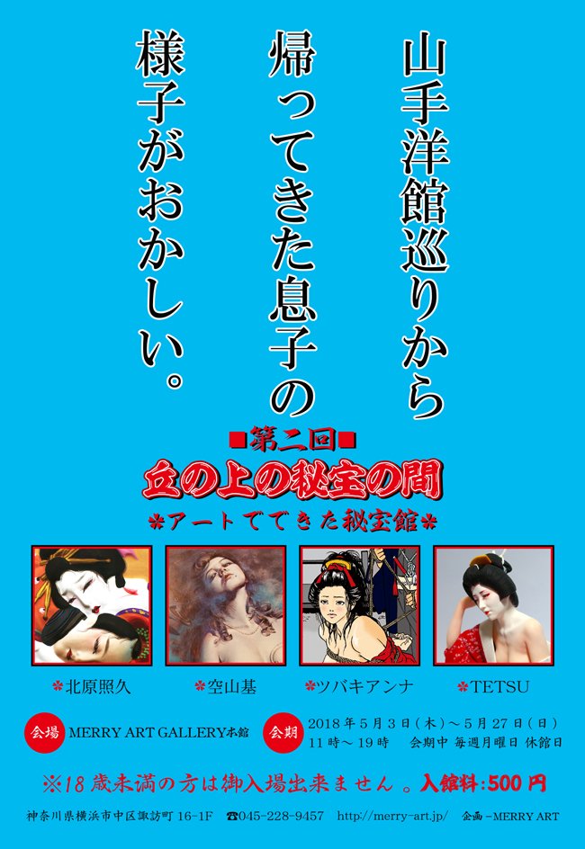 2018年5月3日(木)~5月27日(日) 11:00~19:00■会期中月曜休館日■入館料:500円※18歳未満の方は御入場出来ません。