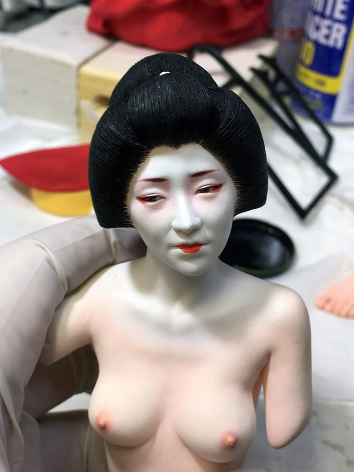 上半身と柄鏡の塗装終了です。